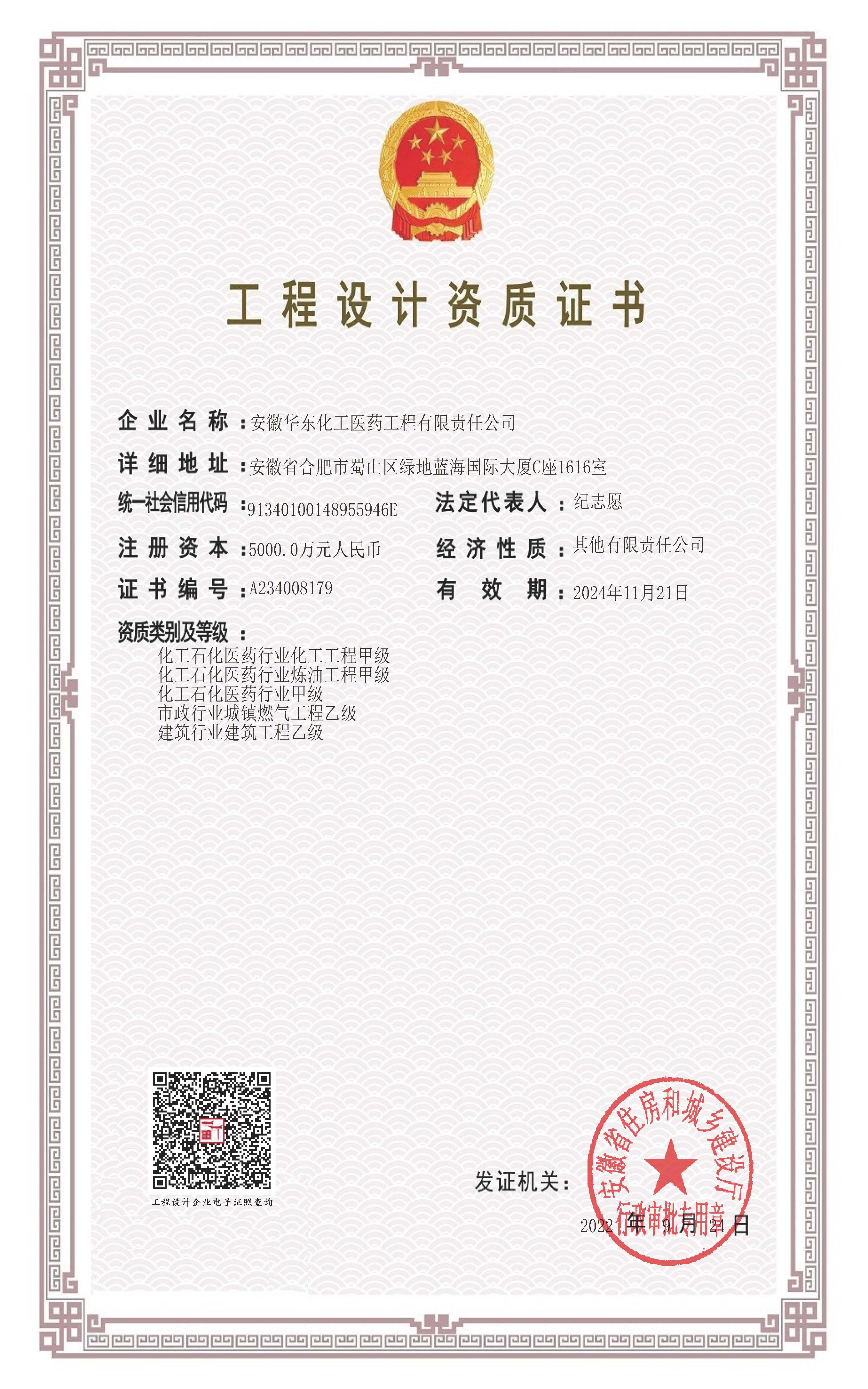 工程設(shè)計:化工石化醫(yī)藥行業(yè)(煉油工程、化工工程)專業(yè)甲級;化工石化醫(yī)藥行業(yè)乙級;建筑行業(yè)(建筑工程)乙級;市政行業(yè)(城鎮(zhèn)燃?xì)夤こ?專業(yè)乙級