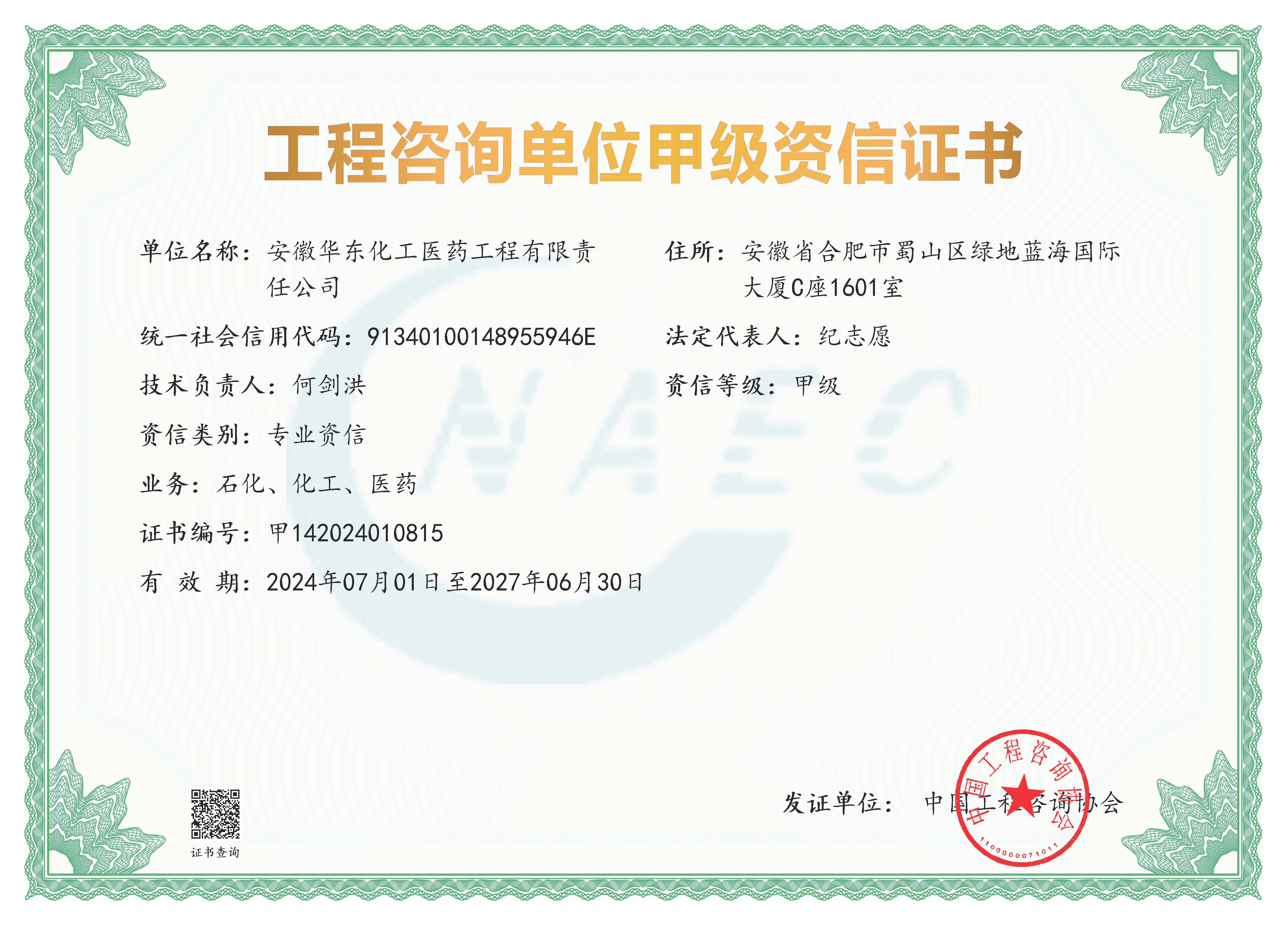 工程咨詢:石化、化工、醫(yī)藥專業(yè)資信甲級